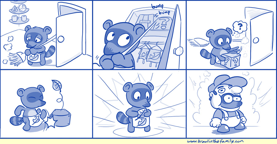 Der nächste Kandidat zeigt uns Tom Nook, Waschbär und Ladenbesitzer aus allen Animal Crossing-Teilen. Was passiert eigentlich, wenn ein Waschbär ein Waschbären-Blatt aus Super Mario Bros. 3 isst?