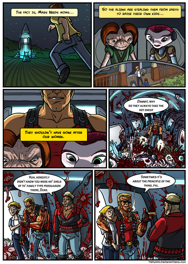 Unser zweiter Comic stammt aus der Feder von Manly Guys Doing Manly Things und bringt den Hauptcharakter der Comic-Reihe mit seinem Idol zusammen. Hier geht es um das Phänomen, durch fiese Aliens entführte Frauen im US-Amerikanischen Alltag. Ist ja quasi eine alltäglich Plage.