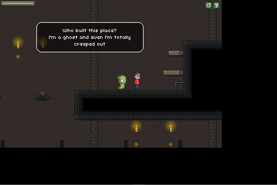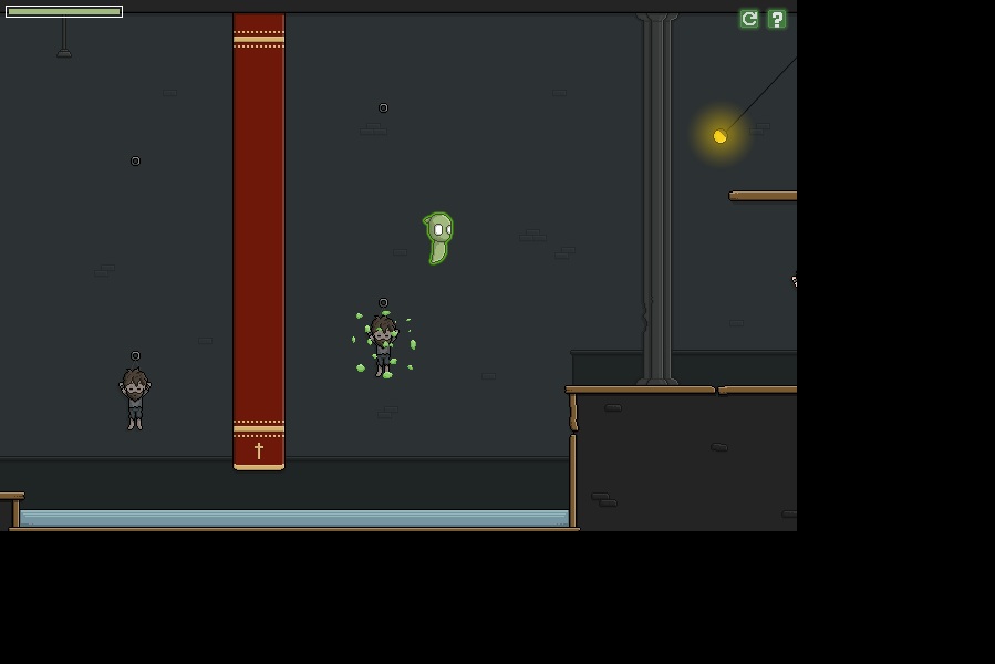 Vom Gameplay her ist A Ghostly Journey im Prinzip ein Plattformer mit Rätseleinlagen. Jedes Level ist im Prinzip so strukturiert, dass ihr über diverse Umwege und Hindernisse zum Geisterportal kommt, das euch ins nächste Level befördert. Schwierig wird das Ganze allerdings erst durch die ganzen Steine, die den Weg des Protagonisten-Geistes pflastern. Beispielsweise ist er, ähnlich wie wir Menschen, an die Gesetze der Physik gebunden, zumindest was die Schwerkraft angeht. Aus diesem Grund muss er sich immer wieder Menschen suchen, von denen er anschließend Besitz ergreifen kann. Denn sobald ihr den Körper der Person wieder verlasst, bekommt ihr einen Schwung verpasst, der euch hilft, höher gelegene Orte zu erreichen. Aber auch die Statur des Menschen kann viel entscheiden. So ist ein alter Mann nicht so beweglich, wie beispielsweise eine Athletin. Doch die Schwerkraft ist nicht das einzige Hindernis, denn viel schlimmer ist das Licht. Jede Form von Licht, sei es künstlich oder ein auch ein Feuer, sorgen dafür, dass sich der kleine Geist, im wahrsten Sinne des Wortes, in Luft auflöst. Kombiniert ihr diese Fallen mit den Projektilen und Selbstschussanlagen der Geisterjäger, wird so ein einfaches Plattformer-Level schnell zum unüberwindbaren Hindernisparkour. Und genau das ist auch ein Kritikpunkt am Spiel. Teilweise sind es einfach ein paar Hindernisse zu viel, die auf einen einhämmern wollen.