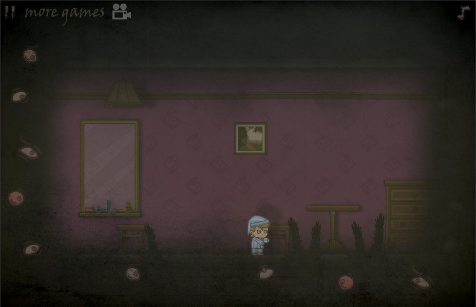 In Little Phobia schlüpft ihr in die Rolle eines kleinen Jungen, der mitten in der Nacht aufwacht, weil er aufs Klo muss. Doch als er sein Zimmer verlässt und in den Flur der Wohnung tritt, beginnt sich alles um ihn herum zu verändern. Die Tür zu seinem Zimmer schlägt zu, überall finden sich Augen, Geister, Hexen und andere Schauergestalten. Und genau durch diesen albtraumhaften Gang müsst ihr ihn begleiten.