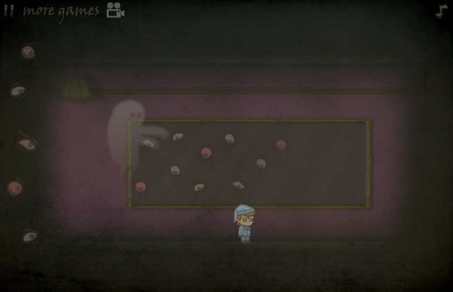 Passend zur Thematik ist auch die Grafik absichtlich schön schaurig gehalten. Rund um den Bildschirm herum tauchen Augen auf, die Gegner sind Furcht einflößend und vor allem das Schließen der Augen wurde gut umgesetzt. Natürlich gehört zu jedem guten Horrorspiel auch eine entsprechende Musik- und Sound-Kulisse, die hier treffend ausgewählt wurde.