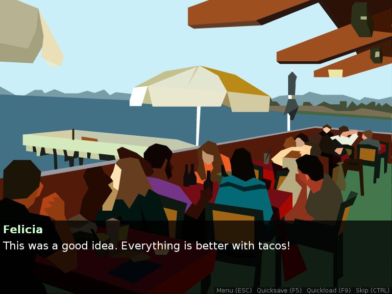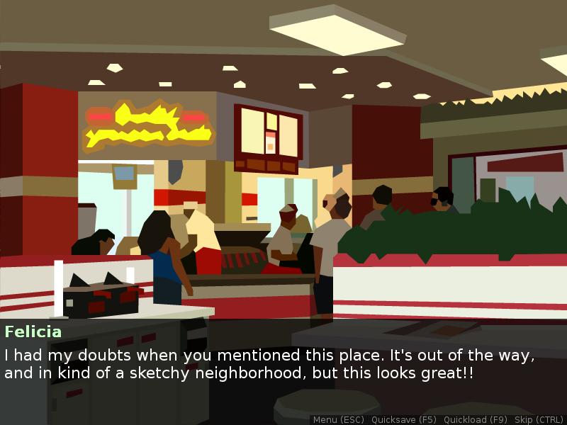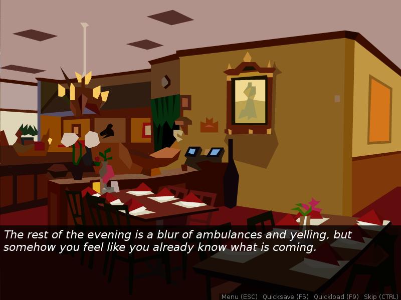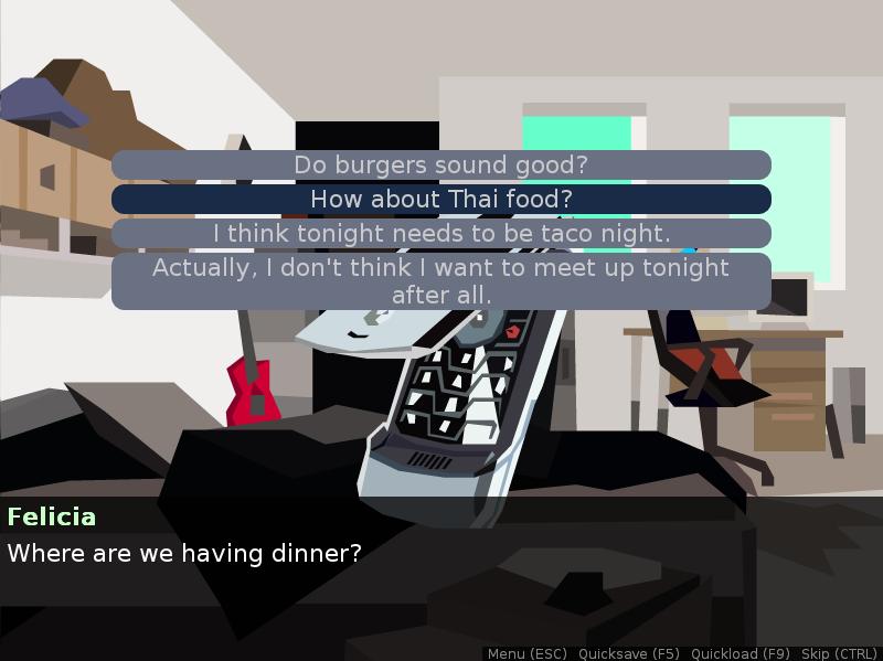Save the Date funktioniert wie die beliebten japanischen Dating-Simulatoren. Ihr klickt euch durch die Dialoge, bis ihr eine Entscheidung treffen müsst, die den gesamten Spielverlauf beeinflusst. In diesem Spiel verliert ihr jedoch nicht nur Ansehen, wenn ihr euch falsch entscheidet, sondern euer Date geht einen komplett anderen Weg. Als Chris Cornell dieses Spiel entwickelt hat, kam er sicherlich gerade von einem Final-Destination-Marathon, denn genauso fühlt sich Save the Date an. Ganz gleich was ihr macht, Felicia scheint in jedem der möglichen Szenarien zu sterben. Interessant wird das Spiel vor allem dann, wenn euer Hauptcharakter die vierte Wand durchbricht und selber merkt, dass Felicia immer wieder stirbt. Die neuen Dialogoptionen, die unter anderem durch Erfahrungen aus fehlgeschlagenen Durchgängen entstehen, geben euch dann erneut die Hoffnung das Schlimmste zu verhindern, doch klappt es wirklich? Ich werde es euch an dieser Stelle natürlich nicht verraten.