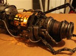 2 antique clock movements, 1 +1/2 hangers, Metal teapot stand, plastic mechano, plumbing parts, 1 plant pot, 1 hair gel pot + various lids, plastic tub (those ones you get nuts in the the supermarket), plastic tubing, lots and lots of nuts and bolts, miniature storage box (for the battery compartment), pocket laser disc, 3 lightbulbs, carboard tube, metal covering from an old hairbrush, AV socket, tons of odds and ends from my parents garage, oh and of course the usuals – milliput, humbrol and warhammer paints, hot melt glue and about 6 gallons of superglue.