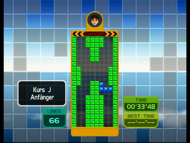 Bleibt noch zu erwähnen, dass der Modi-Reigen durch das Wii Balance Board mit eigener Variante und vielen weiteren neuen verrückten Versionen erweitert wird. Mit der wichtigste Modus ist allerdings der Wi-Fi-Kampf gegen Tetris-Spieler aus aller Welt. Komplett mit Rangliste kann man sich so im Battle-Modus (der natürlich auch offline mit Freunden im heimischen Wohnzimmer gespielt werden kann) rund um den Globus Items zwischen die Beine… pardon Tetris-Reihen schmettern, um am Ende als lachender Sieger dazustehen. Die Items sind übrigens mitunter ganz schön mies. Da wird einem Mitspieler dann einfach mal die Fähigkeit genommen seine Steinchen zu drehen, oder es gibt plötzlich nur noch lange I-Steine, die ja bekanntlich nicht immer passen. Oder alle Steine der Gegner bekommen plötzlich Raketenantrieb und sausen wie Kometen auf die Spielfläche. Außerdem warten Items wie Schildkröten-Panzer nur darauf die eigenen unteren Reihen zu zerstören, womit man sich manches Mal aus dem Schlamassel retten kann.