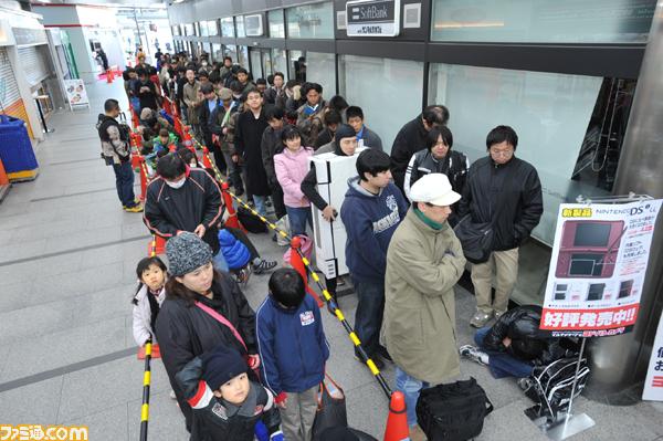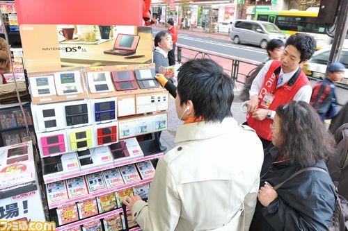 Lesezeit: 2 MinutenWenn in Japan eine neue Videospiel-Konsole auf den Markt kommt, dann fiebert quasi eine ganze Nation diesem Ereignis entgegen. Nun ja. Vielleicht nicht das ganze Land, aber doch ein beachtlicher Anteil der Bevölkerung. Das schlägt sich meist in langen Schlangen vor den einschlägigen Geschäften in Tokios Technologie-Stadtteil Akihabara und leeren Händlerregalen nieder. Hier sammelten sich am Samstag die Fans, um den Start des DSi LL mit zuerleben.