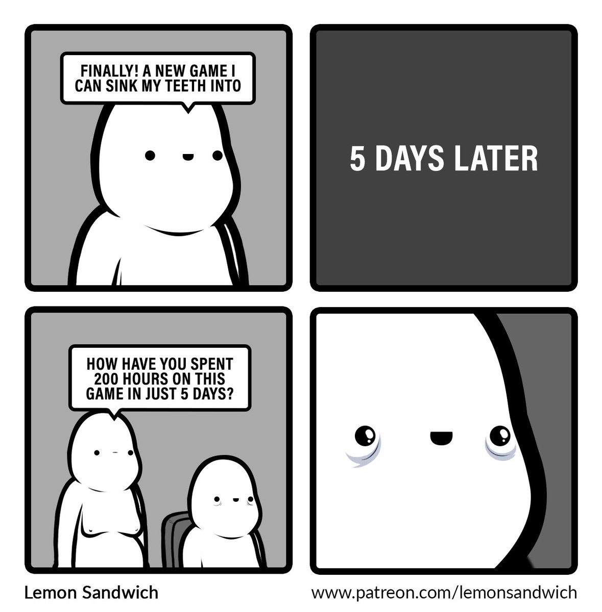 Zwar geht es in unserem zweiten Comic von Lemon Sandwich nicht direkt um Ni No Kuni II, aber in gewisser Weise schon. Immerhin werden Hardcore-Fans sicherlich ähnlich reagiert haben, wie die Figur im folgenden Comic. Aber wer nimmt es ihr auch übel? Jeder von uns kennt die Situation ein neues Spiel in den Händen zu halten, auf dass wir Stunde um Stunde gewartet und uns möglicherweise sogar unseren Urlaub extra dafür aufgespart haben. Jede freie Minute muss schließlich gut genutzt sein.