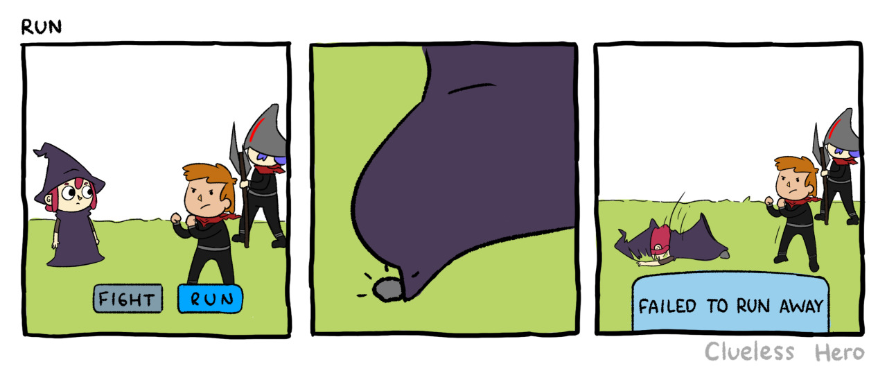 Wir bleiben bei den Rollenspielen, gehen allerdings zu den Kämpfen über. Gerade bei Rollenspielen gibt es unterschiedlichste Herangehensweisen für Kämpfe. Mal sind es Echtzeit-Fights, in denen wir selbst aktiv werden müssen oder aber es handelt sich um ein rundenbasiertes Kampfsystem, wo jede Handlung überdacht werden kann. Aber unabhängig davon, welche Art Kampfsystem es am Ende des Tages nun ist, gibt es oft die Möglichkeit, den Kämpfen auch zu entkommen, um beispielsweise die drölfte Low-Level-Begegnung zu vermeiden. Doch häufig ist es dann sehr überraschend, wenn der Fluchtversuch scheitert, insbesondere bei eher schwächeren Feinden. Der folgende Comic von Clueless Hero gibt nun endlich Aufschluss, wieso Fluchtversuche in Wahrheit schief gehen.