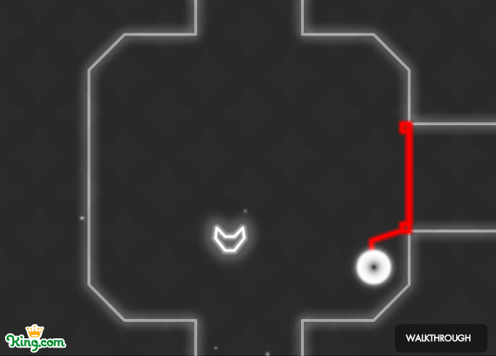 Saturated kommt komplett ohne Geschichte aus. Der Spieleinstieg ist also ziemlich direkt. Plötzlich finden wir uns in einem kleinen weiß-leuchtenden Raumschiff wieder, das zu Beginn nur durch die Gegend flitzen kann. Allerdings ist der Begriff flitzen bewusst gewählt, denn unsere Fortbewegung mit den Pfeiltasten, oder dem obligatorischen W-A-S-D ist ziemlich “schnittig”. Das Labyrinth, in dem wir uns befinden, betrachtet der Spieler aus der Vogelperspektive. Ein Gang führt uns zu einer ersten verschlossenen Türe, die wir nicht öffnen können, da uns das nötige Schießgerät noch fehlt. Im nächsten Raum bekommen wir jedoch, was wir brauchen. Eine rote Waffe. Ab zurück zum ersten Hindernis.