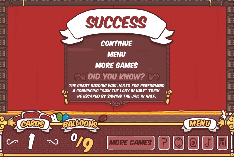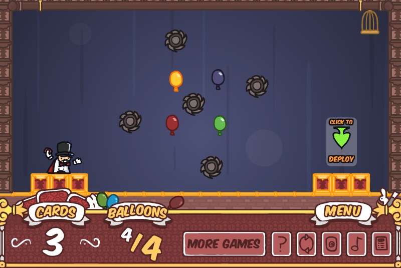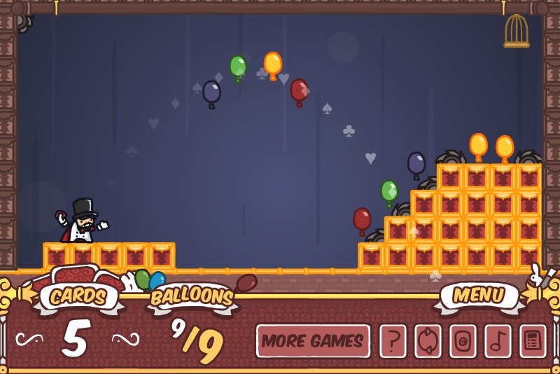 Entgegen der Erwartungen, die viele haben könnten, handelt es sich bei diesem Spiel nicht um ein Adventure oder einem ähnlich actionreichen Titel, sondern um ein Rätsel-Spiel. Als The Great Bazooki müsst ihr alle Ballons auf der Bildfläche mit einer limitierten Anzahl von Spielkarten abwerfen und somit zerstören. Was einfach klingt, ist natürlich in Wirklichkeit weitaus schwieriger. Nicht nur machen euch Hindernisse oft das Leben schwer, sondern auch das Einstellen des richtigen Winkels. Dieser ist nämlich frei auswählbar, sodass ihr die Karten in einer beliebigen Flugbahn werfen könnt. Das ist auch nötig, denn besonders im späteren Spielverlauf habt ihr es des Öfteren mit mehreren verschiedenen Hindernissen auf einmal zu tun. Beispielsweise Ventilatoren und Kreissägen oder springende Kaninchen und Guillotinen. Besonders ein Level war besonders schwer, da es zunächst galt die Ballons durch eine erste Berührung sichtbar zu machen, bevor eine zweite Karte sie schlussendlich zum Platzen bringt.