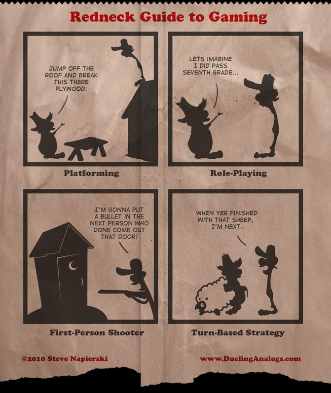 Lesezeit: < 1 MinuteManchmal kommt man schon ins Grübeln, bei all’ den Genres in die sich Spiele einsortieren lassen. Was ist ein 3rd-Person-Action-Game, was ein Platformer, ein turn-based Strategy-Game oder gar ein Shooter? Zum Glück gibt es relativ klare Unterscheidungsmerkmale. Um die wichtigsten Genres zu erklären, hat sich Steve Napierski von www.duelinganalogs.com einmal Gedanken gemacht. Vielleicht nicht ganz jugendfrei und vielleicht ein klein wenig klischeehaft, aber…