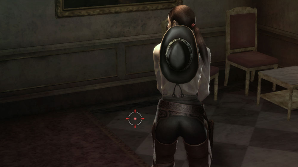 Herrlich ist, wieviel interaktive Gegenstände in den Levels zu finden sind. Bilder, Obstschale, Körbe, Kisten, Fässer, Lampen, Stühle, Tische, Scheiben, Gläser… prinzipiell reagiert alles physikalisch korrekt auf grobe Gewalteinwirkung, was dazu führt, dass man ständig wie ein Wild-West-Pistolero in der Gegend herumballert, obwohl weit und breit niemand zu sehen ist. Denn überall verstecken sich Goldbarren, Münzen, Munition und seltene Umbrella-Abzeichen, die Infos, Bilder und Videos in unser Archiv spülen (was übrigens wirklich sehr interessant ist, wenn man sich für die Geschichte der Reihe und ihre Charaktere interessiert).