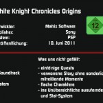 Lesezeit: 10 MinutenWhite Knight Chronicles Origins für Sonys PSP gehört wohl zu den letzten größeren Titeln die für diesen Handheld erscheinen werden, bevor die PSVita ihn ablöst, und spielt 10.000 Jahre vor den Geschehnissen des PS3-Spiels White Knight Chronicles. Und während wir auf der PS3 noch selbst einen der gewaltigen yshrenianischen Ritter steuern dürfen, kämpfen wir auf der PSP in einer kriegsgebeutelten Welt gegen sie.